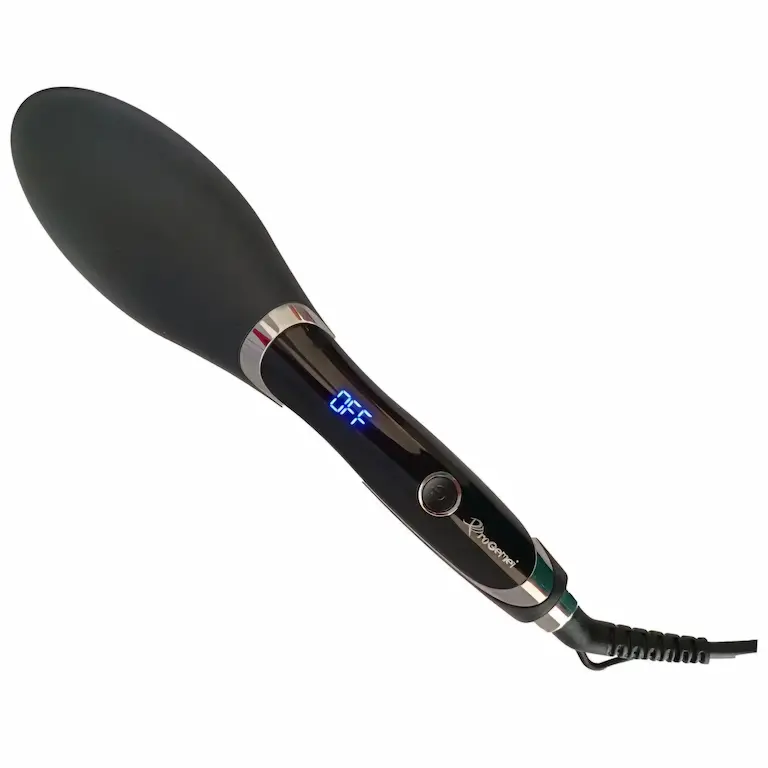 برس حرارتی پرو جیمی مدل GM-2972 در حقیقت مدل پیشرفته GM-2950 است. بیشینهٔ دما در این برس حرارتی تا 750 درجه فارنهایت معادل 400 درجه سانتیگراد میرسد که به لطف این حرارت میتوان موهای سر را 5 برابر سریعتر از برسهای معمولی صاف کرد و یکی از بهترین برسهای حال حاضر است. یکی از ویژگیهای بارز این برس حرارتی فناوری تولید یون است که کمک میکند موهای سر در حداقل زمان خشک شوند. در ساخت این برس حرارتی از مادهای استفاده شده است که از موهای شما در برابر آسیبهای گرما محافظت میکند. برس حرارتی پرو جیمی مدل GM-2972 دارای یک پوشش پانل سرامیکی است. همچنین این برس حرارتی بهصورت ارگونومیک طراحی شده است بهطوری که دستگاه در دست کاملاً پایدار است.
