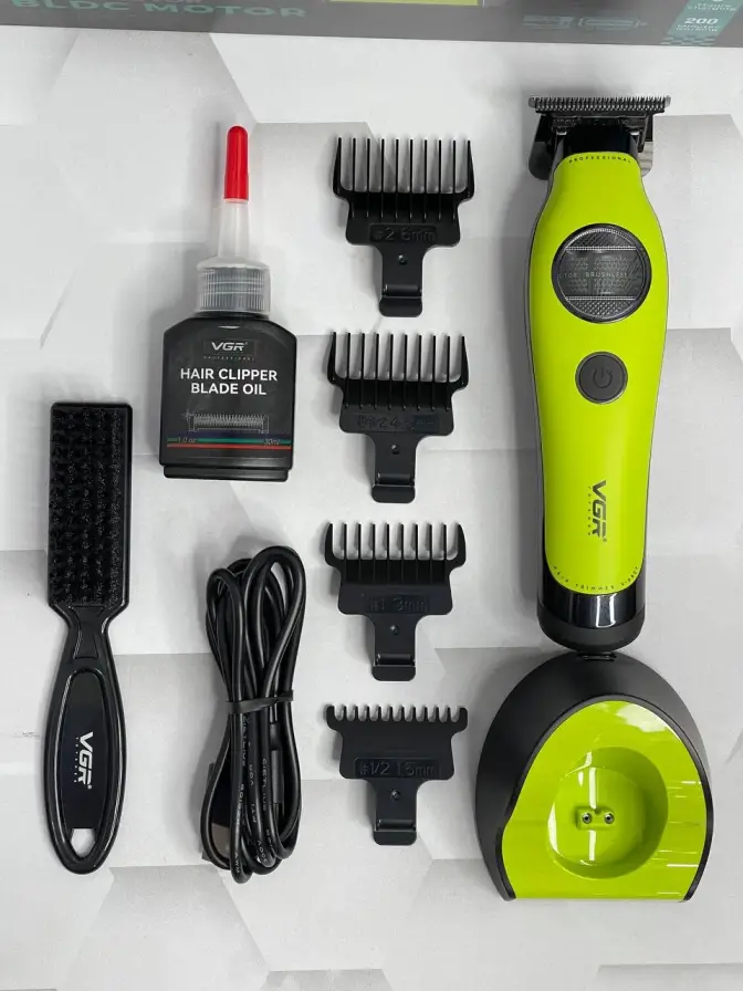 - تجهیزات همراه : استند شارژ - کابل شارژ تایپ C - برس تمیزکننده - 4 عدد شانه 1.5، 3، 4.5 و 6 میلی متر - روغن روان کننده